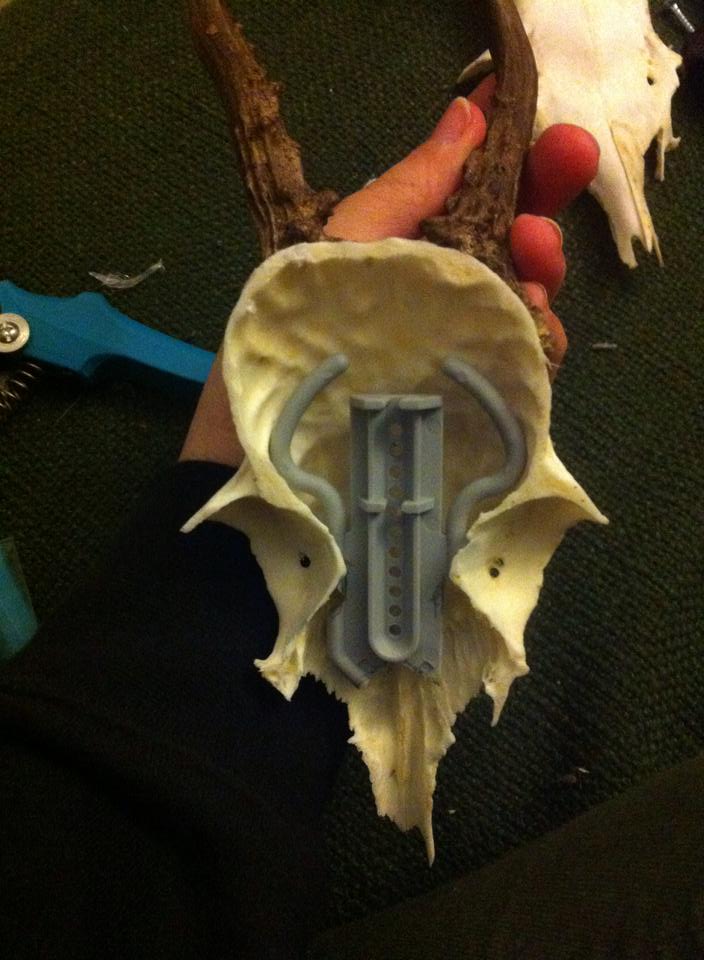 Ein Bekannter von mir klebt seine Trophäen einfach mit der Heißklebepistole am Brettchen fest. Bei nicht lackierten Brettchen und leichten Trophäen funktioniert dies auch ganz gut, der Kleber hält gut am Schädelknochen. Ausprobiert habe ich diese Methode einmal mit lackierten Trophäenbrettchen.
